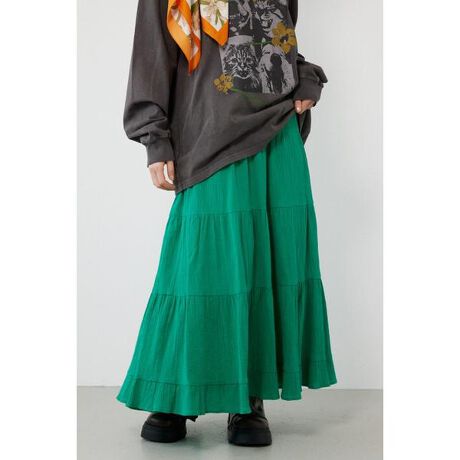 ■ポイントAラインに広がるシルエットで、歩くたびに揺れ動くティアードスカートです。腰まわりが膨らんで見えない様ボリューム調整をし、裾にはたっぷりと広がるシルエットパターン。ウエストはゴム仕様なのでストレスフリーで着用できます。■ディテールベーシックなブラック、オフホワイトはどんなスタイルにも合わせられる万能カラー。グリーン、ライトピンクの鮮やかなカラーは着用するだけで気分が上がります。カラーに拘ったRODEO CROWNSオリジナルティアードスカートをお楽しみください。■スタイリングカジュアルなグラフィックデザインTシャツ合わせがおすすめです。ラフさもありながら、甘さを抑えくれ今っぽい空気感を表現できます。■生地表地には楊柳生地を使用。柔らかく軽い着心地で、凹凸のある表面感が肌への密着を抑え、通気性が良く蒸れにくい素材です。■透け感:なし■裏 地:あり■伸縮性:なし■光沢感:なし[注意事項]※画像の商品はサンプルです。実際の商品と仕様、加工が若干異なる場合があります。※画像の商品は光の照射や角度、お使いのモニター環境により、実物と色味が異なる場合がございます。※着用、お取り扱いの際は、アテンションタグをご確認ください。