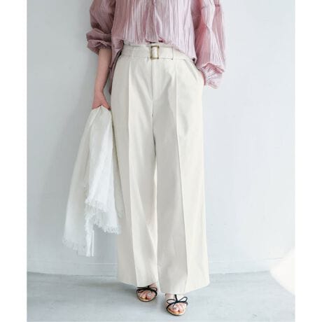 共地ベルトがアクセントになった、ハイウエストデザインのワイドチノパンツ。