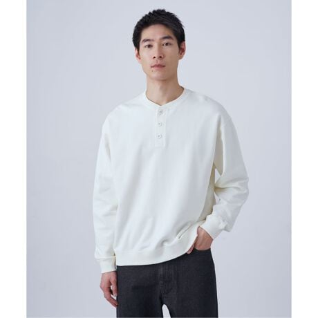 トレンドのボックスシルエットを落とし込み、シンプルながらも程よく雰囲気のあるヘンリーネック仕様のスウェット。