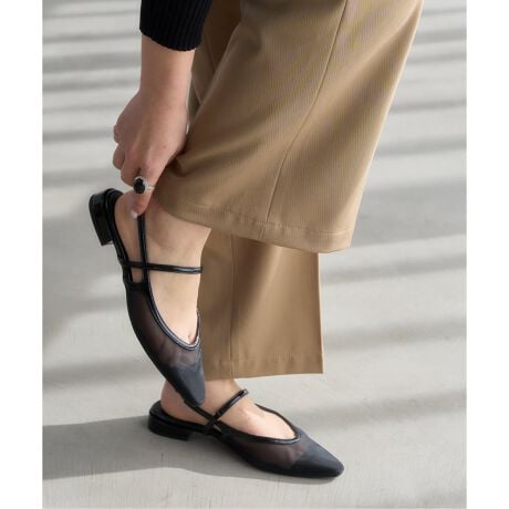 スリングバックをベースにメリージェーンのディテールを取り入れた抜け感のあるデザイン。
