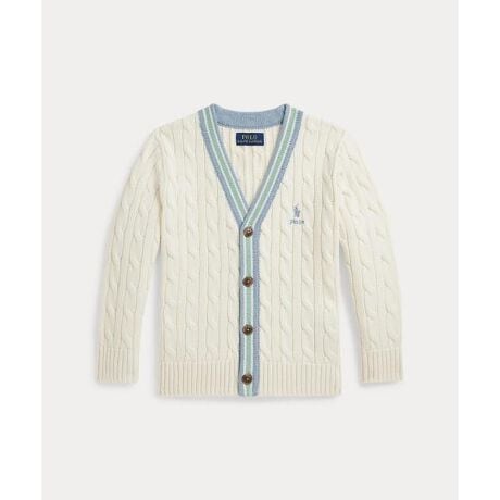 ケーブルニットのデザインとストライプのトリムがトラディショナルなクリケットセーターを思わせる、柔らかいコームドコットンのカーディガン。・左胸にシグネチャーのポニー刺繍とPoloのロゴ・ストライプ入りのVネック・ボタン付き前立て / 前立てにストライプ入り / 特別に開発したPolo Ralph Laurenのロゴ入りボタン・長袖、リブニットのカフス・リブニットの裾 【素材】・本体:綿 100% 装飾部分を除く【生産国】バングラデシュ