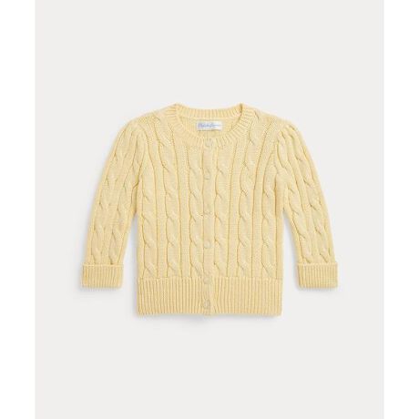 ケーブルニットパターンが特徴のカーディガン。中厚手のコームドコットンと、さりげない光沢感を生み出すメタリック糸で仕立てたアイテム。・左胸にシグネチャーのポニー刺繍・クルーネック・ボタン付き前立て / 特別に開発したRalph Laurenのロゴ入りボタン / 下前立てに沿ってあしらったグログラントリム・長袖のパフスリーブ、リブニットの折り返しカフス・リブニットの裾 【素材】・本体:綿 95%、ポリウレタン 5%【生産国】カンボジア