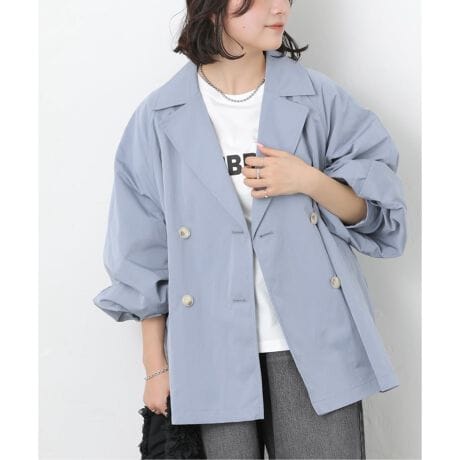 クロス生地を使用したトレンチコート。