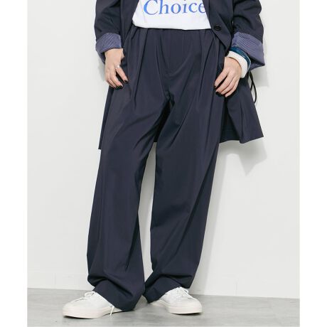 たっぷりタックの入ったワイドパンツはこれからの時期に嬉しい機能的素材。