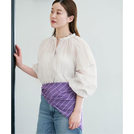 ランダムに入れたプリーツと、ほんのり透け感のあるシアー素材が表情豊かなブラウス。