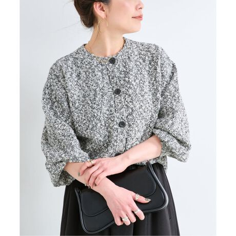 スラブ糸のような凹凸感のあるMIX調カラーがキャッチーな印象。カーディガン自体のデザインはシンプルで着やすいシルエットにし、程よい肉感があり着映えします。