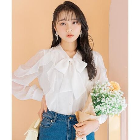 表情のある素材感が魅力の、ドビードットフリルブラウス【Design】・繊細なドビードットを施したシフォン素材を使用し、軽やかでフェミニンな印象に。・ラッフルデザインが、動きのあるシルエットを演出し、華やかさをプラス。・1枚で着映えするのはもちろん、ジャケットなどのインナーとしても活躍◎・きれいめからカジュアルまで、幅広いスタイリングに対応します♪【Fabric】・繊細なドビードットを施したシフォン素材で、軽やかな着心地に。・ほどよい透け感があり、上品でやさしい印象を演出します。・ご自宅でお手入れが出来るのも嬉しいポイント♪・ホワイト、ミント、ブラックの3色展開となります。【Care】手洗い可能