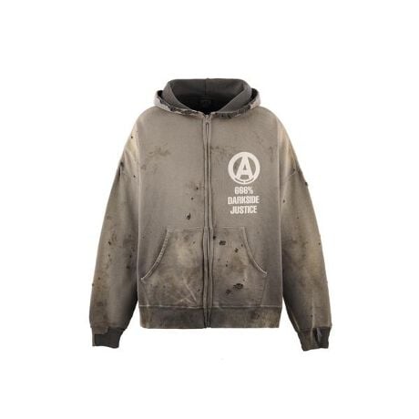 フロントの胸部分には、バウンティーハンターらしいアナーキーマークとブランド世界観を象徴するスローガンの『666% DARKSIDE JUSTICE』のロゴを配置。