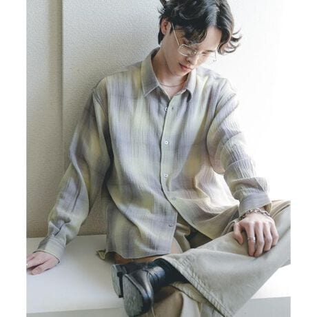 ・昨年秋に好評だったほどよくシアーなオンブレチェックシャツが、新色を携えて登場。ほどよいルーズシルエットで抜け感ある仕上がりに。