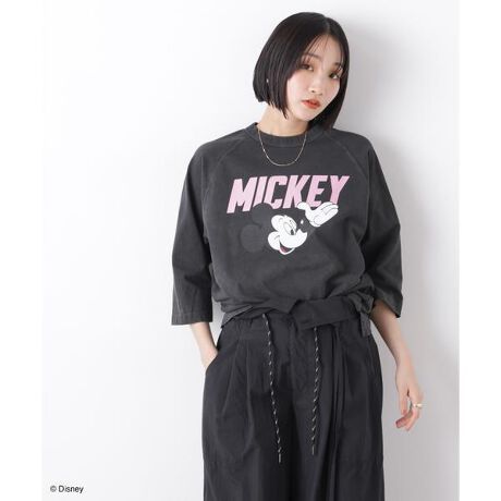 ・レトロな「MICKEY」プリントと配色ロゴが目を引く7分袖Tシャツ
