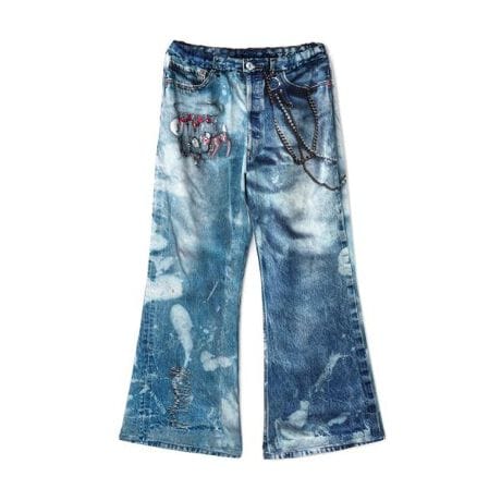 ウォレットチェーンやピンや裾のスカルなどアクセントも効いていて、合わせるだけでコーデが完成する主役パンツになります。