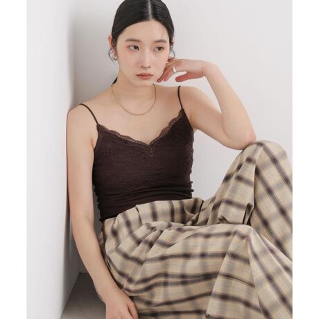 ・女性らしいレースデザインでトレンド感のあるカップ付きキャミソール
