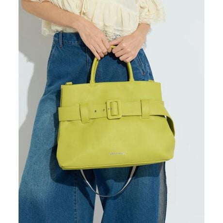 ハンドバッグとしてはもちろん、付属のライン入りショルダーストラップで斜めがけもできる2WAY仕様。