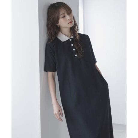 シンプルながらに華やかな印象の配色襟がアクセントのカットワンピース。