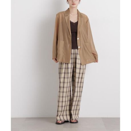 軽やかな素材感とチェック柄のコンビが初春に最適なワイドパンツ。ウエストゴムのストレスフリーな履き心地ながら、タックと落ち着いたチェックカラーでラフになりすぎないデザインが魅力。シンプルなトップスと合わせるだけでスタイリングが完成します。