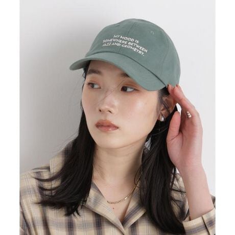 リネン混素材を使用した、ナチュラルな風合いが特徴の刺繍入りキャップ。フロントにはオリジナルメッセージ「MY MOOD IS SOMEWHERE BETWEEN JAZZ AND GEOMETRY.(気分はジャズと幾何学のあいだ)」を刺繍で表現。リネン特有の軽さとクリーンな印象が、今季らしいリラックスムードを演出した一品です。