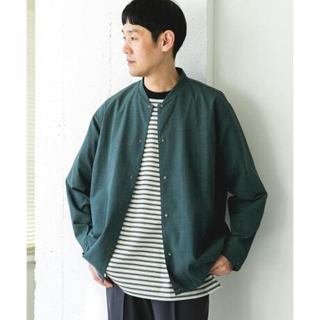 ・MA-1のようなノーカラーディテール、小さく付け心地の軽いドットボタンや、シームポケットデザインのすっきりとしたデザインでカジュアルに羽織れる一着。