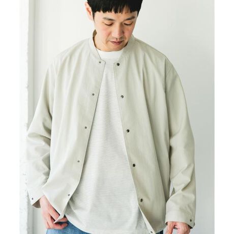 ・MA-1のようなノーカラーディテール、小さく付け心地の軽いドットボタンや、シームポケットデザインのすっきりとしたデザインでカジュアルに羽織れる一着。