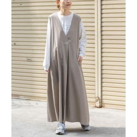 フロントのタックデザイン、深めのVネックがすっきり見えし、1枚で様になる雰囲気溢れる一着です。