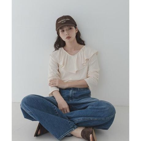 襟元にほどこされたフリルでぱっと華やぐ印象に。