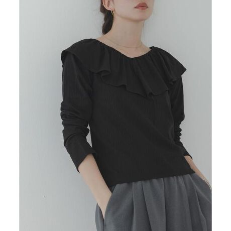 襟元にほどこされたフリルでぱっと華やぐ印象に。