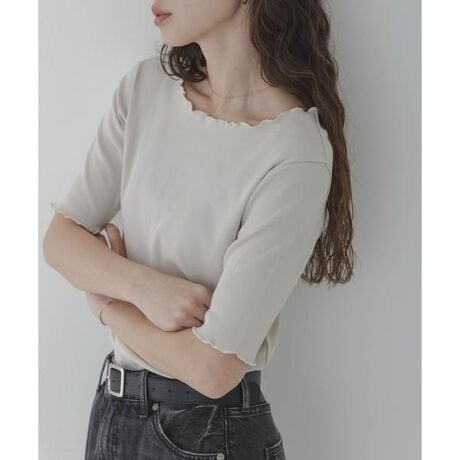 スラックスやデニムなどシンプルにあわせるだけでも様になるデザインカットソーです。ジャケットやニットカーデなどを羽織ったり、キャミワンピやサロペットのインナーにも最適な1着。