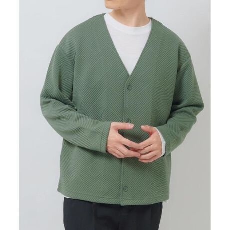 立体感のあるジャカード編みが印象的なカーディガンと、ベーシックなインナーのセットアイテム。