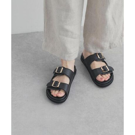 ダブルストラップがポイントになる安定感のある履き心地のプラットフォームサンダル。