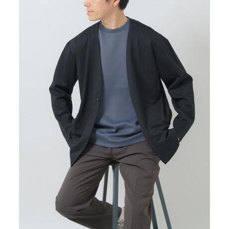 SMART-air糸を採用した調温ノーラペルジャケット。熱を吸収・放出し、急な温度変化にも対応しながら衣服内を快適に保ちます。ラペルを省いたミニマルなデザインが、洗練された大人の印象を演出します。