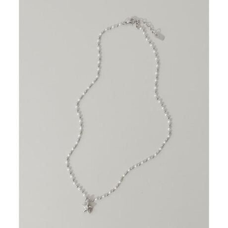 小さなパール調ビーズとシルバーボールを交互に連ねたスリムチェーンはデザイン性があり、女性らしく柔らかい印象を演出してくれます。