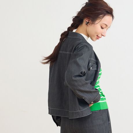 小柄さんにも着こなしやすいコンパクトな着丈ときれいめアイテムとも相性の良い女性らしいデザイン・シルエットのデニムジャケット。