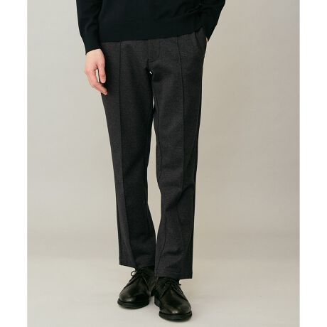 ■デザイン説明・脚長効果のあるテーパードシルエット。・ウエスト内側にはスピンドル搭載で、ウエスト調整もお手軽。・フロントに走るクリースラインが縦方向へ視線を導き、脚をすらりと長く見せる。・クリースラインはピンタック仕様なので、ラインが消えることなく着用可能。