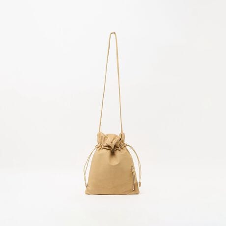 別注で作製した、カジュアルな雰囲気で持てる巾着型ショルダーバッグ。