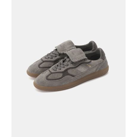 クラシックなサッカーシューズを彷彿とさせるロングタン(折り返しタン)が特徴的。上質なダークグレースエードをベースに、同系色のトリムを効かせたシックで都会的なデザインが魅力です。ロートップのスマートなフォルムに、サイドの縫製ラインやタン&サイドに施されたロゴのエンボが程よいアクセントに。ラバーソールは安定した履き心地を提供し、デイリーから綺麗めカジュアルまで幅広く対応できる万能スニーカーです。