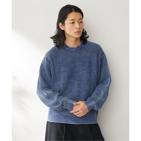 立体的な畦編みが存在感を放つ、ゆったりとしたシルエットのクルーネックニット。