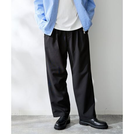 フロントに入ったワンタックが立体感を生み、ゆるさの中にも上品な雰囲気をプラスしています。