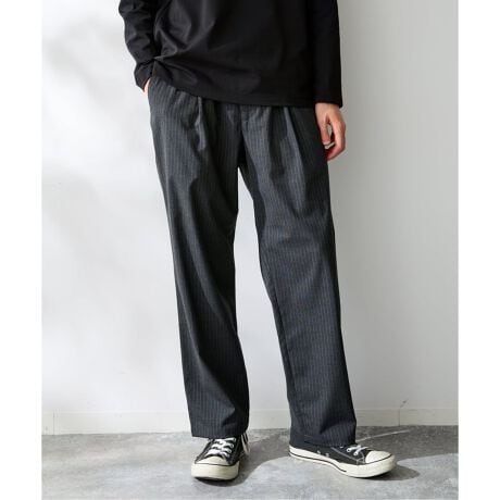 フロントに入ったワンタックが立体感を生み、ゆるさの中にも上品な雰囲気をプラスしています。