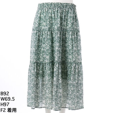 3段に切り替えたデザインが自然な揺れ感を生み、歩くたびにやさしく表情が変わる一枚。小花プリントがコーディネートに華やかさを添え、シンプルなトップスと合わせるだけで春らしい装いが完成します。