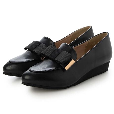 【超軽量!片足150gのらくちんポインテッドトゥリボン付きローファーパンプス】