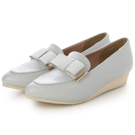 【超軽量!片足150gのらくちんポインテッドトゥリボン付きローファーパンプス】