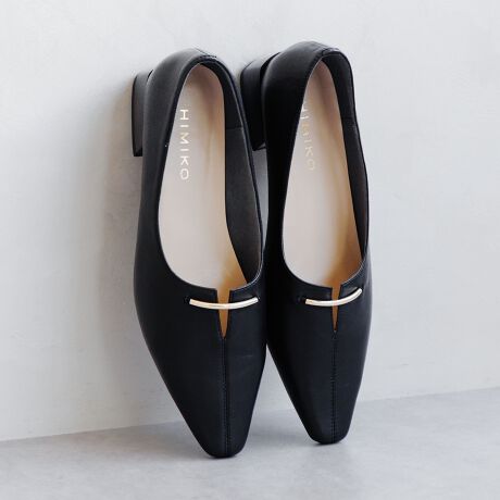 特別なWEB限定アイテムに新デザインが登場。フロントに印象的なメタルバーを施したフラットパンプス。