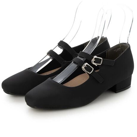 【Le son/ル ソン】スクエアトゥ2ベルト付ベーシックローヒールパンプス
