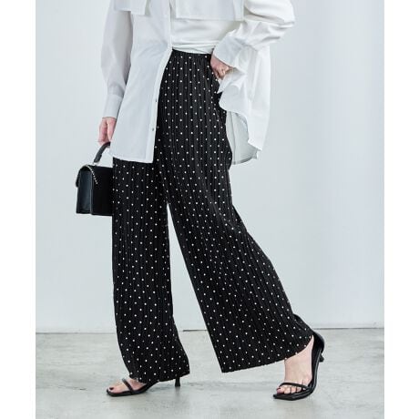 Fashion Letter ファッションレター 定番のプリーツパンツもレトロなドット柄でコーデのポイントに。