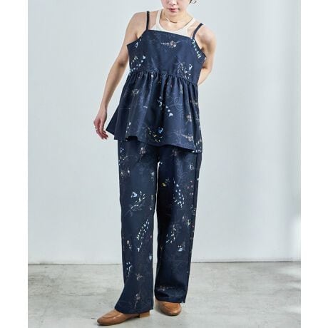 ボタニカル柄ワイドパンツ