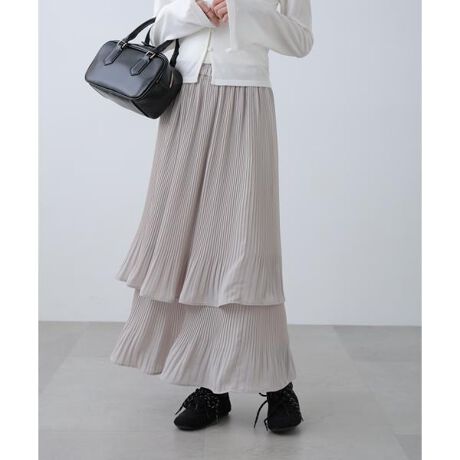 細かなプリーツで縦ラインを強調し、広がりすぎずすっきり見えのティアードスカート。裾にかけてプリーツを消した甘すぎないフレア感がポイントです。軽やかな2段ティアードが動くたびに表情の出るシルエットに。ウエストはゴム仕様で、ラクな穿き心地も嬉しいポイント。カジュアルなTシャツからレディライクなトップスまで着回ししやすく、オンオフ問わずデイリーに活躍します。※モデルの着用画像の場合、光の当たり具合により、実際の色味と異なって見えることがございます。色味は、商品単体の画像をご参照ください。