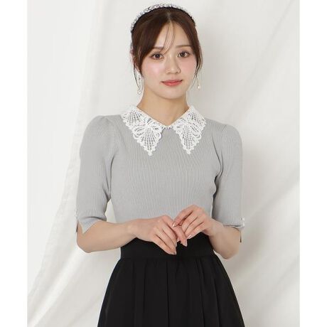 リボンレースカラーリブニット