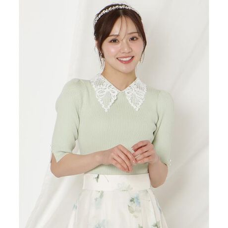 リボンレースカラーリブニット