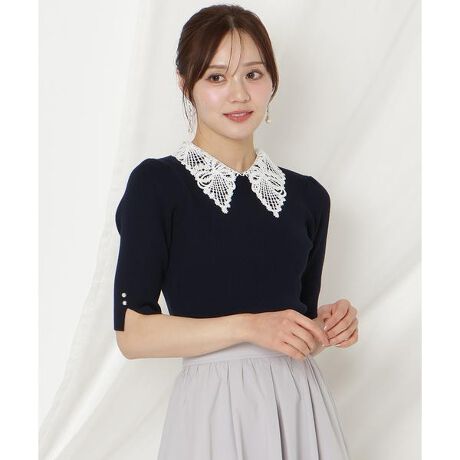 リボンレースカラーリブニット