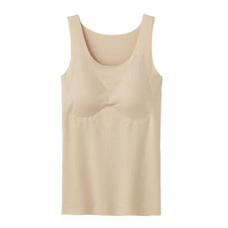 完全無縫製のひんやり綿混グループのパッド付汗取り付きインナー。