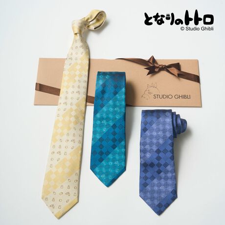 世代を超えて愛されるジブリ作品『となりのトトロ』の世界を上品に表現したネクタイコレクションです。トトロやマックロクロスケ、さらには、どんぐりや木の実、きのこといった豊かな自然のモチーフを、定番の柄の中へさりげなく配置しました。普段使いしやすい落ち着いたデザインを中心に、バリエーション豊富に取り揃えています。